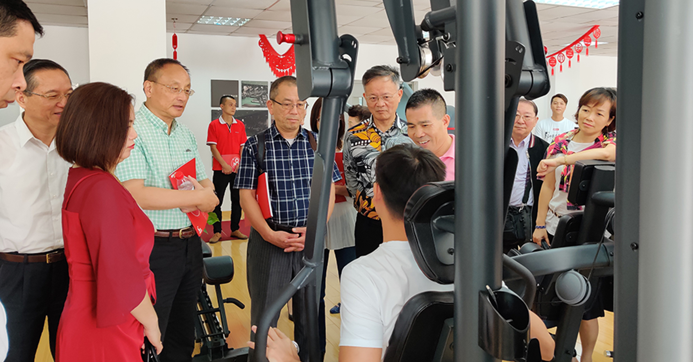 首先,来宾一行参观考察了leyu.乐鱼的文化长廊,对我司的发展历程、企业文化、企业特色等方面进行初步了解。在参观一楼与负一楼展厅过程中,来宾一行对leyu.乐鱼种类齐全的健身器材表现出浓厚的兴趣。
